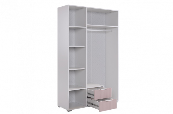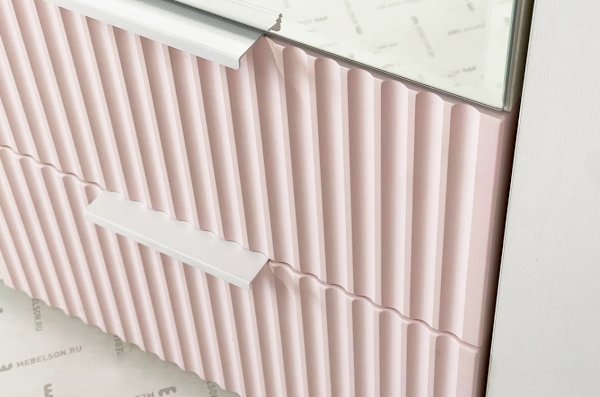 Габариты 1200х422х1900 мм обеспечат достаточное пространство для хранения одежды, белья и других предметов, а благородное белое дерево и розовая пудровая эмаль придают шкафу шарм и изысканность. Фасады из МДФ с фрезеровкой в виде вертикальных полос создают интересный и стильный акцент.