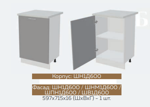 ШН1Д1Я600 Шкаф нижний с 1-м ящиком и 1-й дверью Белый глянец холодный/Графит софт