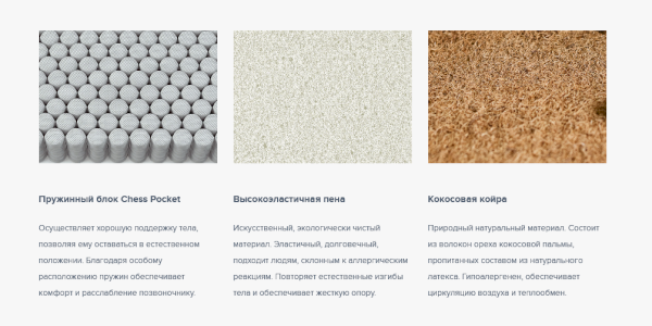 Независимый пружинный блок ChessPocket Белый хлопковый войлок Кокосовая койра Высокоэластичная пена Foam Усиление по периметру матраса
