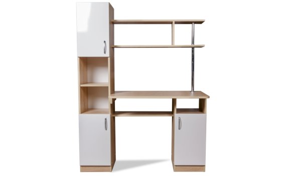 Пенал (дополнительная секция) превращает простой функциональный стол в полноценную рабочую зону, он вмещает закрытые полки для хранения документов и две ниши под дополнительную оргтехнику.