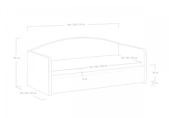 Спальное место: 80/90/120х180/190/200 см