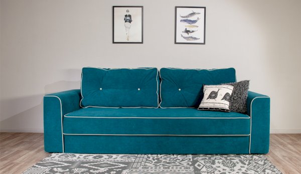 Сиеста – это удобный современный диван с элементами классического дизайна: декоративные пуговицы на подушках, контрастный кант по периметру. Широкое посадочное место, мягкие приспинные подушки, бархатистая обивочная ткань делают диван необычайно комфортным. Благодаря надежному механизму раскладки еврокнижка диван легко трансформируется в двуспальную кровать с ортопедическим матрасом в основании. За счет использования матраса с независимым пружинным блоком – диван абсолютно безопасен для здоровья позвоночника.
