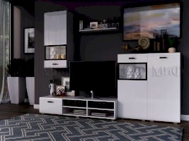 Глянцевая гостиная «Рио» впишется в пространство любой комнаты и любого стиля. Модный блеск фасадов зрительно делает комнату просторнее и светлее. Подобная мебель отличается оригинальным модулями, позволяющими красиво расставить мебель.