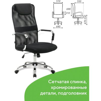 Высокая сетчатая спинка с интегрированным подголовником, выраженная поддержка поясницы и подлокотники с противоскользящими накладками гарантируют комфортное долгосрочное использование.