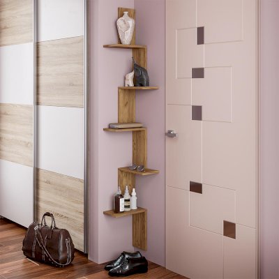 Угловая полка Стайл станет не только практичным решением, но и очень стильным предметом интерьера. Выполненна из ЛДСП. На ней вы сможете расположить рамки с фотографиями, книги, домашние цветы и другие необходимые вещи.