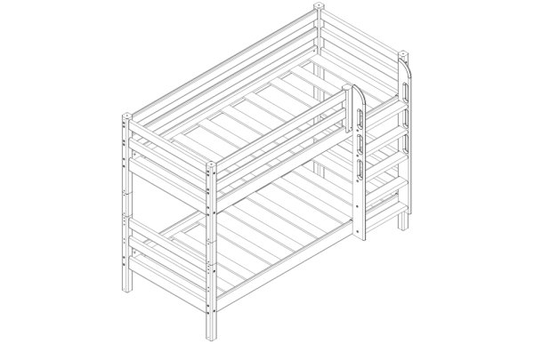 В состав варианта входит: Пакет № 1 базовый, кол-во 1 шт. Пакет № 2 латы, кол-во 1 шт. Пакет № 3 задняя защита от падения, кол-во 3 шт. Пакет № 4 передняя защита 1/4, кол-во 1 шт. Пакет № 12 опоры для низкой кровати, кол-во 1 шт. Пакет № 13 прямая лестница для низкой кровати, кол-во 1 шт.