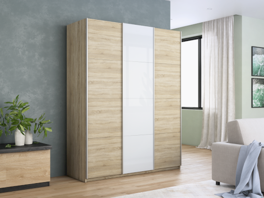 Серия «Прайм» отличается доступностью и функциональностью Навесные двери и лаконичная отделка фасадов создают прогрессивный дизайн. Подойдет тем, кто любит компактную и изящную мебель. Алюминиевые ручки и верхний ходовой профиль обеспечивают легкость и прочность конструкции. Многолетняя безупречная работа благодаря высококачественной немецкой фурнитуре Hettich. Прочная ПВХ-кромка толщиной до 1 мм защищает края от сколов и повреждений. Плавный ход дверей обеспечивает надежная система Hettich Top Line M. Дополнительно можно установить доводчики. Снаружи нет заглушек и винтов благодаря стяжечной системе крепления полок на флипперах, а корпус усилен эксцентриковыми стяжками. Навесные двери скрывают раздвижной механизм от глаз. Они надежно удерживаются в направляющих и не соскакивают. Каждая дверь поделена на 4 секции Секции расставляются в произвольном порядке, создавая новый дизайн фасада.