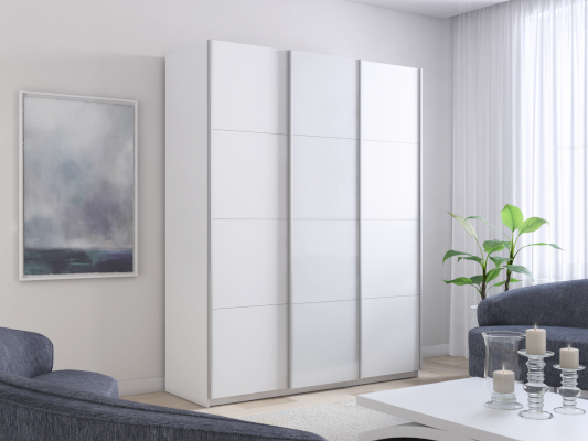 Шкаф-купе 3-х дверный Прайм ДСП/Белое стекло/ДСП 1800х2300х570 мм