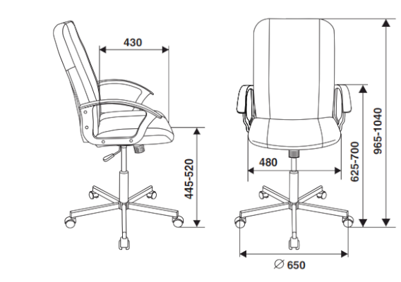 Высота с подлокотниками: 630-730