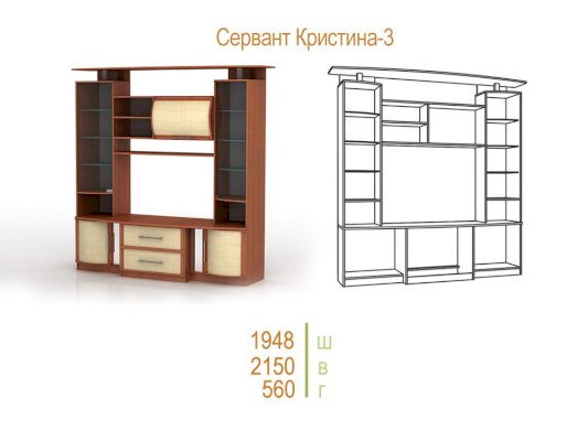 Гостиная «Кристина-3» подходит для различных типов интерьера благодаря разнообразию цветового оформления. Она позволяет оборудовать вашу квартиру с максимальным удобством и функциональностью. Сервант состоит из симметричных витрин, множества шкафов и полок, а также предусмотрена ниша для телевизора. Корпус выполнен из ЛДСП, фасады МДФ.