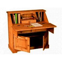 Комбинированная конструкция классического типа. Имеет откидную панель. За ней находятся открытые отсеки и выдвижной ящик. В нижней части секретера расположено просторное отделение с полкой и распашными дверями, а также два ящика.
