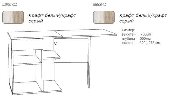Размер: 620х750х500 мм (ШхВхГ), в разложенном виде ширина 1275 мм.