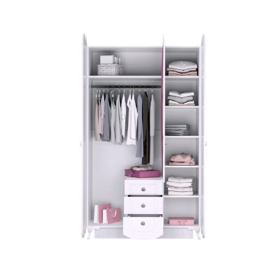 Внутреннее наполнение: Выдвижные ящики, 3 комплекта на шариковых направляющих, петли с доводчиком, штанга для одежды.