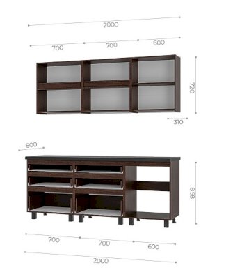 | Глубина верхних шкафов, мм | 310 |