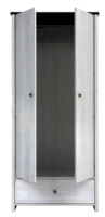 Платяной вместительный шкаф разделен на 2 отделения: отделение со стационарной металлической штангой для одежды и выдвижной ящик.