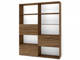 Применение задней стенки из ЛДСП (в ячейках с фасадами) позволяет использовать данный стеллаж для зонирования пространства (чтобы предотвратить опрокидывание, необходимо обеспечить крепление стеллажа к стене).