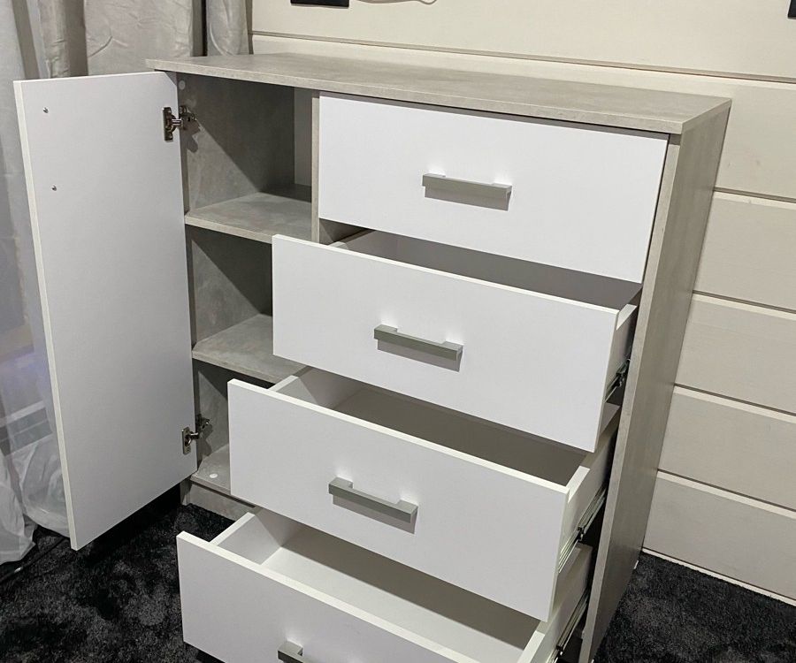 Выбирали комод по фото. Даже не ожидали, что комод окажется настолько качественным и красивым! Все детали без дефектов и сколов, что очень порадовало! Достаточно крепкая фурнитура, крепкие салазки. Приятно, что продавец очень внимательный и положил даже наклейки для того, чтобы закрыть место крепления! Однозначно рекомендую к покупке! Теперь хотим угловой шкаф и тумбу из этой же серии мебели, чтобы собрать комплект.