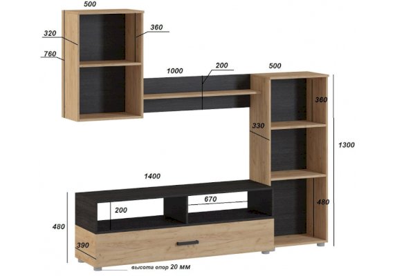 | Длина ниши под телевизор, см | 140 |