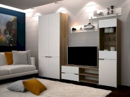 Отсутствие ручек является особенностью серии "Анталия", что придает современный и лаконичный внешний вид. В состав гостиной "Анталия" входит вместительный шкаф, а добавив комод можно получить еще больше места для хранения.