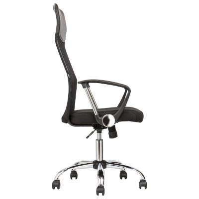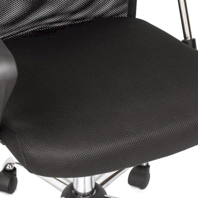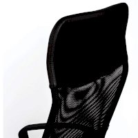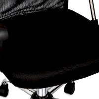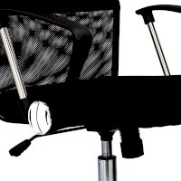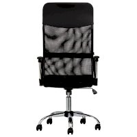 Спинка кресла выполнена из прочного сетчатого акрила. Материал обладает высокой воздухопроницаемостью, легко чистится, способен подстраиваться под физиологические изгибы спины, при этом сохраняет форму и не растягивается. Верхняя, наиболее подверженная износу, часть спинки изготовлена из экокожи. Помимо этого в области поясницы предусмотрена специальная вставка из эластичной ленты для дополнительной поддержки спины.