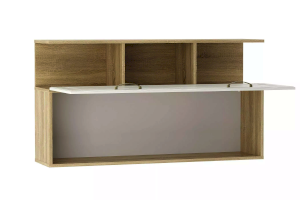 Навесную полку Оливия НМ 040.50 Х можно заполнить большим количеством книг. Нижняя часть модуля оснащена глухим фасадом, который защитит внутреннее содержимое полки от пыли. Для удобства открывания на дверце предусмотрены не одна, а две ручки. Верхние открытые отсеки полки подойдут для демонстрации декоративных элементов.