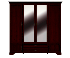 4 распашных двери, за боковыми глухими дверями расположены полки.