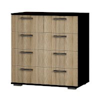 Классическая модель комода Стандарт №5 будет прекрасным выбором для любой комнаты вашей квартиры или дома. В производстве изделия используется высококачественная ЛДСП в популярных цветах венге и лоредо. Для облегчения открывания на нижних ящиках расположились сразу по две ручки геометрической формы, верхняя секция в данной модели разделена на две выдвижные части для вашего удобства.