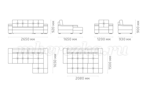 Размер дивана : 2650*1650*920 мм