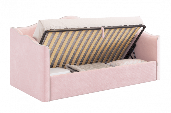Цвет обивки кровати: Нежно-розовый/Галька