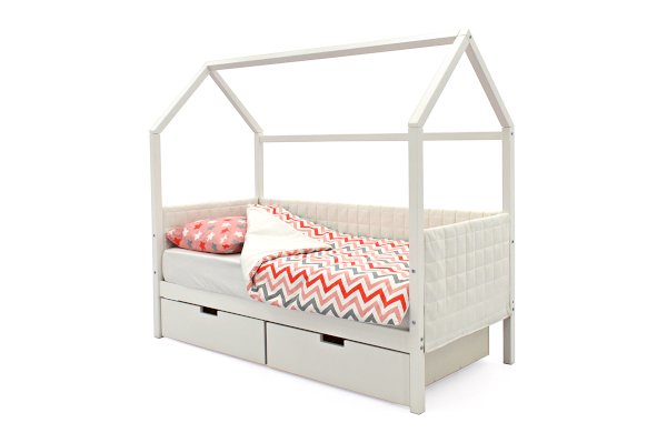 Кровать-домик легко превращается в целый замок для игр с помощью разноцветных тематических игровых накидок. Текстильная крыша на домике создаст ребенку уют и защищенное пространство.