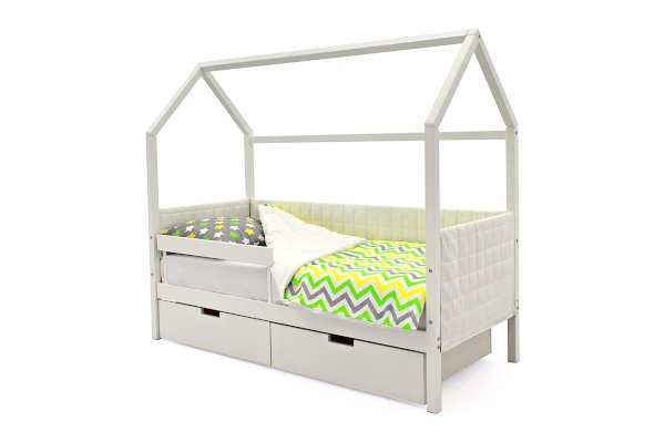 Кровать оборудована манежным бортиком, который защищает малыша от падения во время игр. А для обеспечения дополнительной безопасности малыша во время сна можно приобрести съемный бортик. Особенность его в том, что он закрывает кровать не по всей длине, а только ее часть, благодаря такому конструктиву, ребёнок легко сможет сам забираться на свое спальное место.