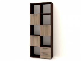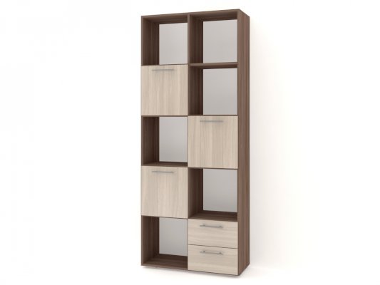 Применение задней стенки из ЛДСП (в ячейках с ящиками и фасадами) позволяет использовать данный стеллаж для зонирования пространства (чтобы предотвратить опрокидывание, необходимо обеспечить крепление стеллажа к стене).