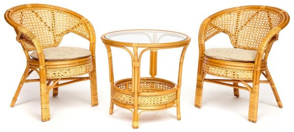 Материал: каркас - натуральный ротанг (высший сорт), столешница - закаленное стекло