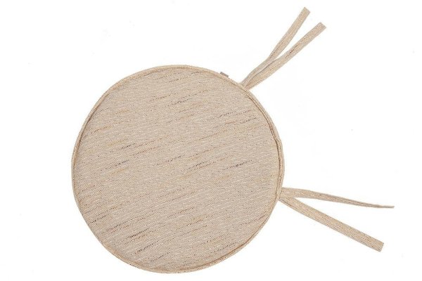 Из ткани "рогожка" бежевого цвета. Наполнитель - поролоновая крошка. Размер (ШхВхГ) 470х40х470 мм