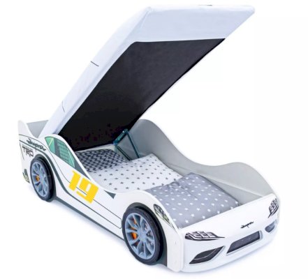 Кровать-машина “Супра” для мальчиков и девочек от 2 до 10-12 лет. Основа конструкции – безопасное ЛДСП, которое соответствует всем стандартам качества в области экологии и охраны здоровья. Ортопедическое основание кровати выдерживает вес до 200 кг.