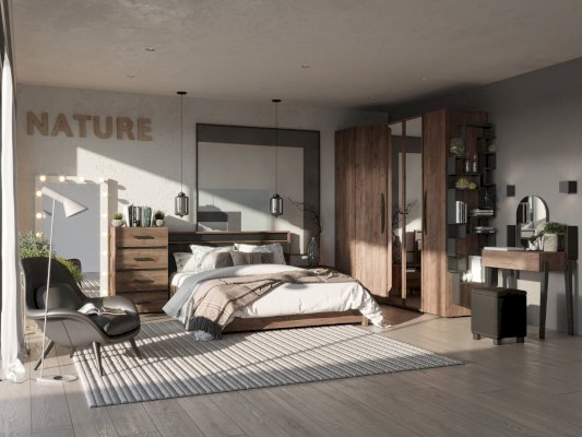 Спальня NATURE - настоящая находка для ценителей природы. Природная простота и естественность декора объединяются с удобством и практичностью мебели.
