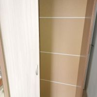 Шкаф-купе Бассо имеет хороший дизайн с зеркалом. Сочетание цвета Венге и дуба соответствует моему вкусу. На мой взгляд, довольно вместительный для небольшой квартиры, в то же время занимает немного места и гармонирует со светлой прихожей. Из недостатков: задняя стенка составляется четырьмя тонкими листами картона или очень тонкого ДСП. По инструкции ее нужно прибивать молотком, что не очень хорошо для конструкции такого хрупкого шкафа. Возникли сложности с плотность прилегание одной двери к боковой стенке. Детали, с помощью которых крепятся верхние ролики, неудобно прикрепляются к фасаду толстыми болтами. Сложно добиться ровного ровного положения роликов на фасаде. Зеркало пришлось клеить самостоятельно. Это не порадовало. В общем, наверное, шкаф хороший за такую цену и для тех, у кого не слишком дорогой ремонт в квартире.
