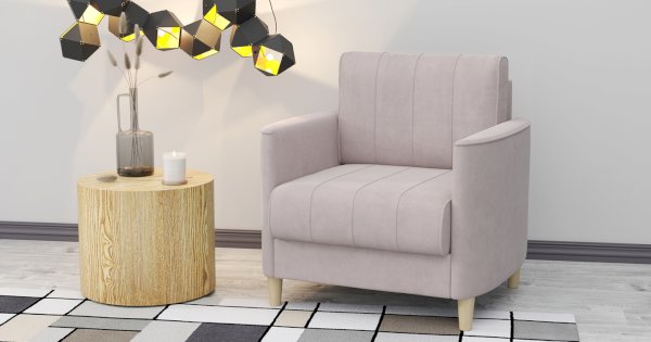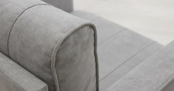 Комплект состоит из прямого и углового диванов, кресла для отдыха и пуфа.